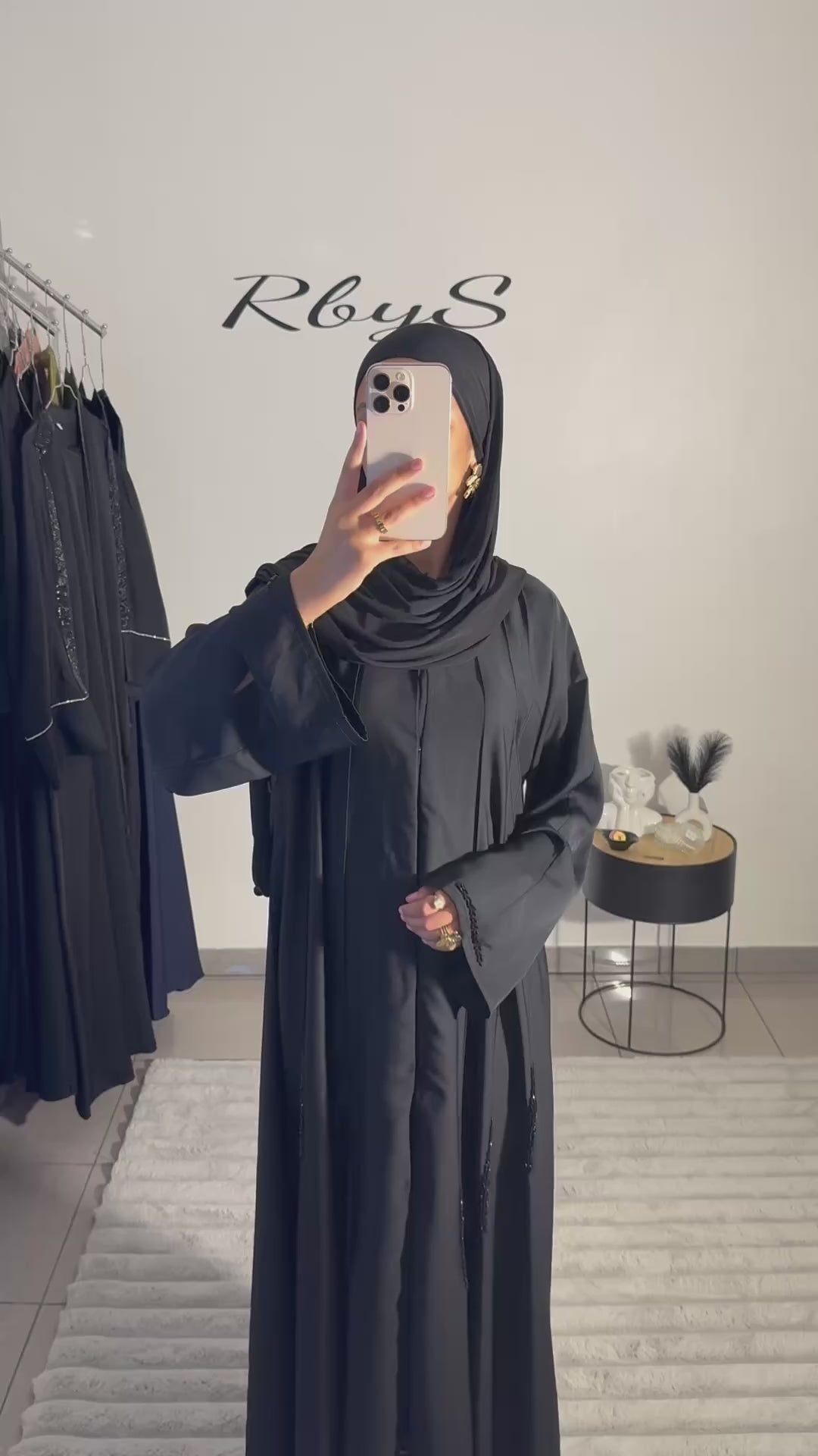 « J’ai imaginé Qamar pour toutes celles qui aiment être élégantes sans compliquer leur vie. Mon astuce : un voile bien mis, une jolie montre, un parfum doux… et cette abaya fait le reste pour toi. »